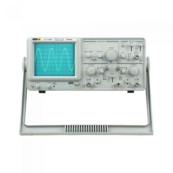 Осциллограф универсальный ПрофКиП С1-118М предназначен для исследования электрических сигналов в полосе пропускания от 0 МГц до 20 МГц путем визуального наблюдения на экране электронно-лучевой трубки (ЭЛТ), измерения их амплитудных и временных параметров по шкале экрана. Может использоваться для ремонта, обслуживания и диагностики неисправностей радиоэлектронной аппаратуры, в том числе и на труднодоступных объектах.