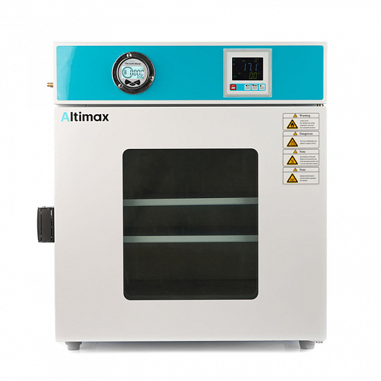 Altimax VDO-1-24 — это сушильный вакуумный шкаф объёмом 24 литра, предназначенный для сушки различных материалов при температуре до 250 °C. Он оснащён аналоговым вакуумметром класса точности 2,5 и позволяет создавать вакуум до 133 Па. Время сушки может быть установлено от 0 до 9999 минут. Шкаф изготовлен из нержавеющей стали и имеет компактные размеры. Управление осуществляется с помощью цифровой панели, расположенной над дверцей.