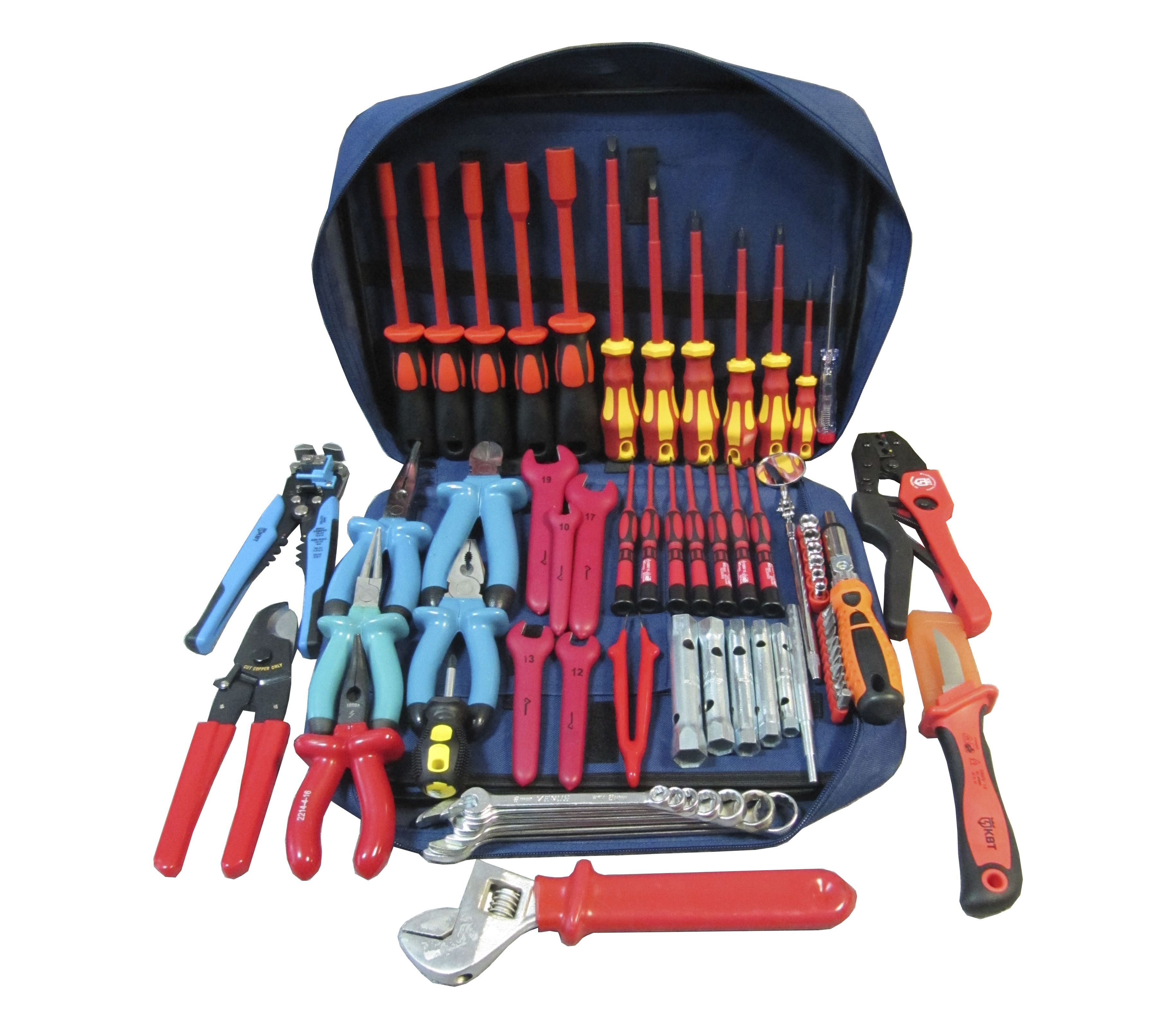 В состав набора релейщика включен стандартный базовый набор необходимых инструментов для электромонтажных, паяльных и других ремонтных работ.