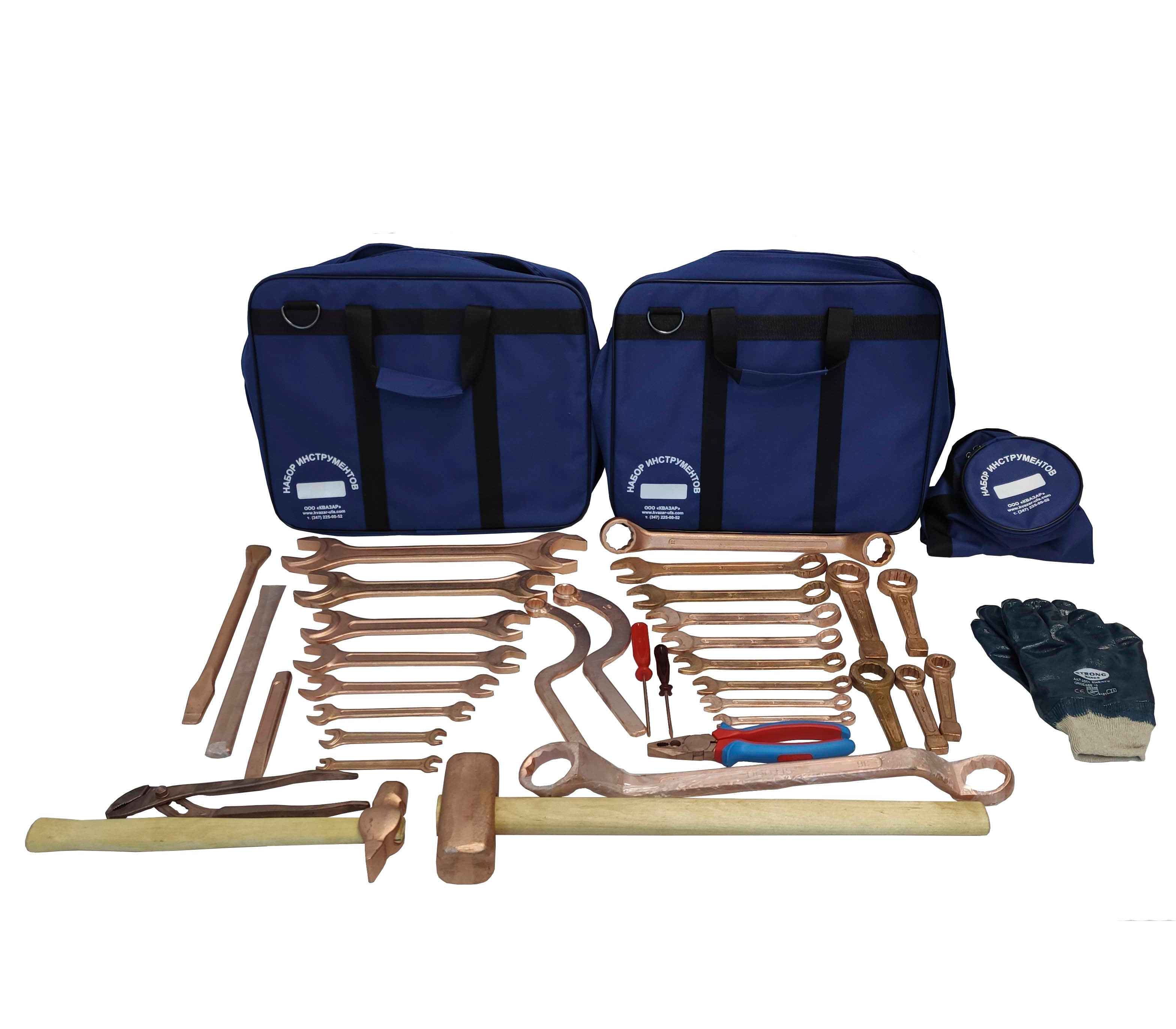 Набор омедненного инструмента предназначен для регулирования работы нефтегазового оборудования, обслуживания средств автоматики и наземного оборудования скважин, установки, демонтажа и ремонта промыслового оборудования (электропогружных насосов, сосудов, агрегатов), устранения дефектов в аппаратах.