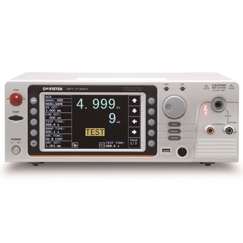 Особенность серии заключается в поддержке испытаний емкостной нагрузки (до 47 мкФ). Это позволяет применять установки для тестирования ИУ с большой входной емкостью - импульсные источники питания, изделия бытовой техники и др. электронные устройства, использующие в выходных цепях сглаживающие фильтры для подавления НЧ шумов и пульсаций. Значение емкости в цепи зависит от конструкции конкретного ИУ. Как правило, представленные в настоящее время на рынке СИ тестеры электробезопасности (УПУ-5М и др.) имеют диапазон значений макс. ёмкости ИУ не более 5- 20 мкФ (реж. Авто/ Ручной). В случае тестирования ИУ с емкостной компонентой в цепи измерений (режим испытания на пробой постоянным напряжением/ DCW) для корректности испытания необходимо учитывать первоначальный заряд конденсаторов в момент запуска теста. Процесс заряда в момент подачи нарастающего напряжения теста (даже при емкости ~1 мкФ) будет занимать дополнительное время, и в некоторых случаях длительность может превысить предел установки таймера (≥ 999с). Если заряд не будет завершен, то это повлияет на результат испытаний. Учитывая это (и в порядке обратной связи от пользователей) разработчики в моделях новой серии GPT712000 модернизировали выходные каскады и увеличили диапазон максимальной ёмкости в ИУ до 47 мкФ.