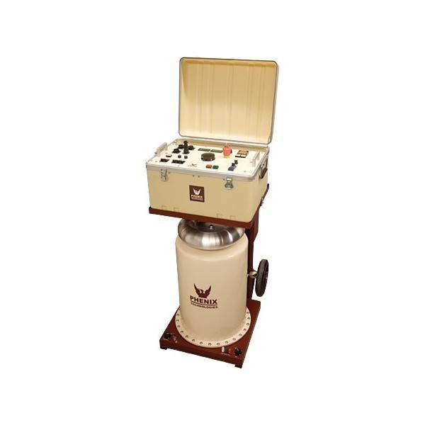 Установка Phenix 6CP100/50-7.5 является высоковольтным источником напряжения переменного тока, предназначенными для испытания изоляции высоким напряжением до 100кВ промышленной частоты 50Гц. Стандартная система включает в себя блок управления/контроля, блок высоковольтного трансформатора и все необходимые кабели, в том числе кабели заземления и питания. Высоковольтная часть смонтирована на тележке с колесами.